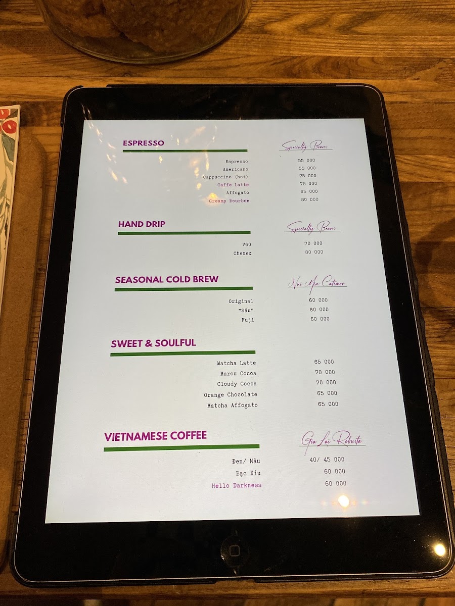 Tranquil Artisan Coffee - 08 Nguyen Quang Bich Menu